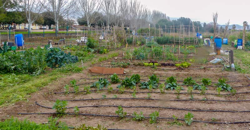 El huerto urbano la Vila-roja está situado delante de la piscina municipal, junto a la CV-18. Todas las áreas de cultivo se realizan con técnicas de agricultura ecológica en horario de luz solar.