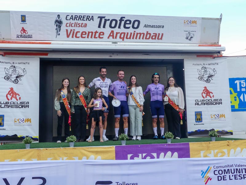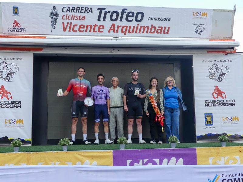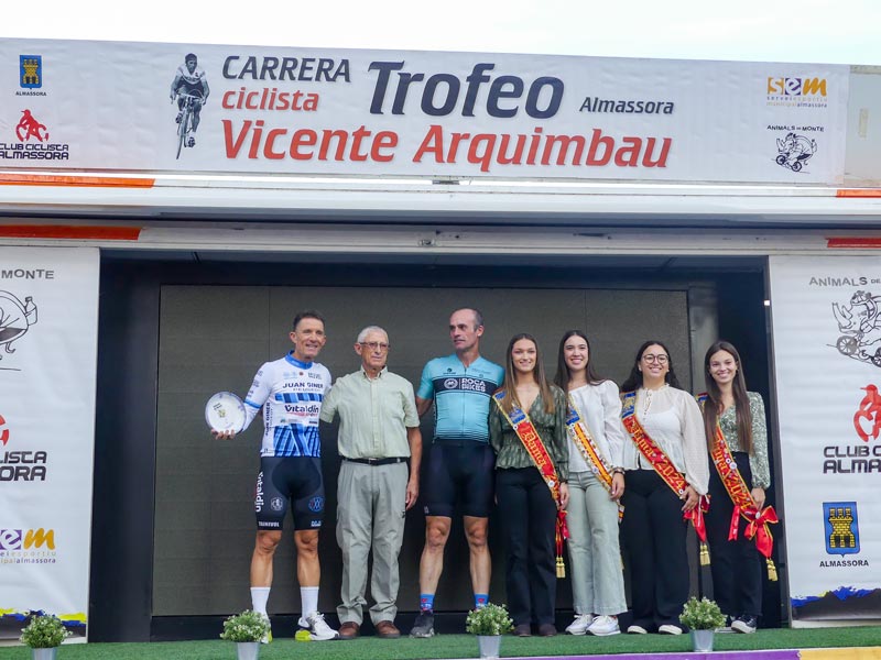 El Club Animals de Monte y el Club Ciclista Almassora celebró la XV edición del Trofeo Vicente Arquimbau. Con la participación de 35 corredores, el centro urbano de la Almassora se convirtió en el escenario de una fiesta del ciclismo, en la que Joan Sanchis (Hyundai Mobikorea Team) se adjudicó el Trofeo Social Vicente Arquimbau y Fernando Gimeno (Juan Giner-Ulevel Vitaldinsport) y Vicent Perales (Hyundai Mobikorea Team) completaron el podio. Alejandro Soro (Brocar Rali Alé) ha sido el primer élite; Sergi Manrique (Baix Ebre) se ha impuesto en Sub 23; Joan Sanchis, en M30; Vicent Perales, en M40; Fernando Gimeno, en M50; Francisco Suárez (Hyundai Mobikorea Team), en M60; y Adrián Robledo (Castillo de Onda), en júnior.