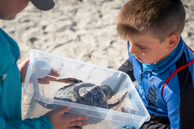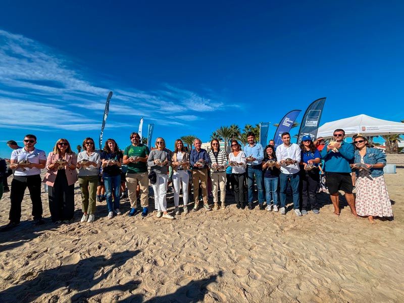 La playa de la Torre de Almassora fue el lugar para despedir al mar a las 22 tortugas marinas que nacieron en esa playa hace ahora un año.