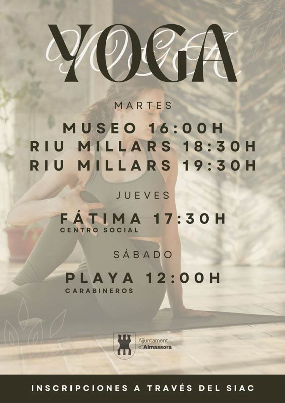 La Concejalía de Participación Ciudadana de Almassora, que dirige la alcaldesa, María Tormo, reactivará las clases gratuitas de yoga para adultos en los barrios dada la gran acogida que tiene esta actividad deportiva que combina el cuidado del cuerpo y la mente. Tormo ha animado a todos los vecinos que lo deseen a inscribirse a esta iniciativa que tiene una periodicidad semanal.