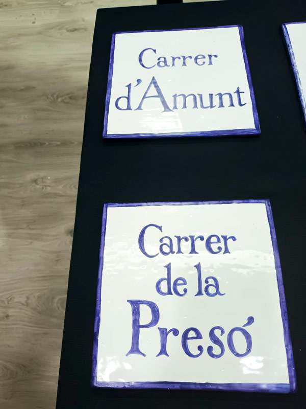 “He buscado unos modelos inspirados en la cerámica valenciana con azul cobalto, muy utilizada en Manises y Paterna y sobre todo en l’Alcora. El formato de los azulejos es de 20×20 y se ha intentado huir de cualquier producción industrial, haciendo los azulejos de forma artesanal y manual, desde el azulejo de barro, el esmaltado, el pintado a mano y la cocción en un horno no industrial. Se buscó una tipografía en minúsculas siguiendo unos patrones de la cerámica de l’Alcora”, ha detallado Membrado.