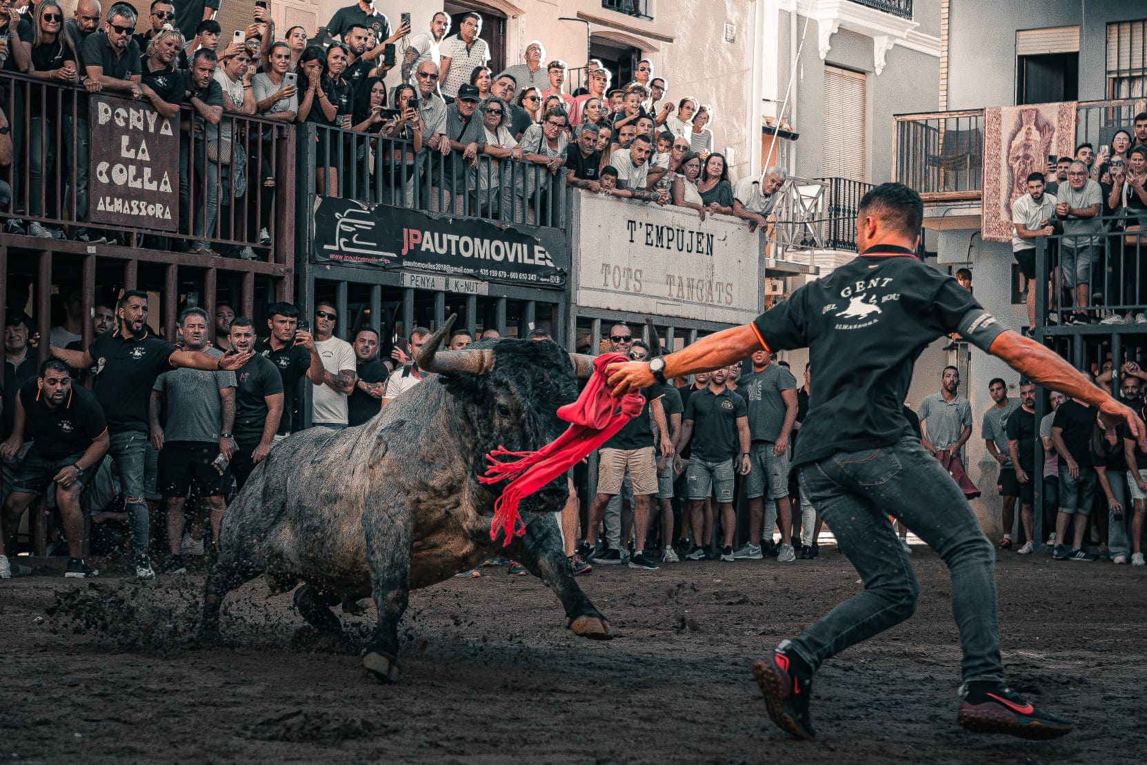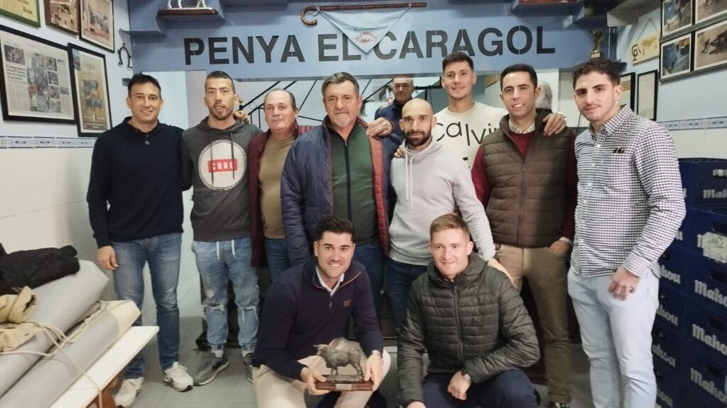 La peña El Caragol premió a Julián Marín por haber hecho la mejor rodada de salida de las fiestas de la Mare de Déu del Roser. Concretamente, cuando el recortador recibió al toro de Adolfo Martín, en la plaza Mayor el pasado 10 de octubre (en la imagen). Julián no pudo asistir al acto y Gonzalo recogió el trofeo en su nombre.