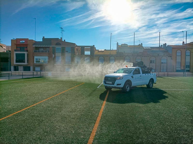Este martes los trabajos se han tratado en los campos de fútbol de Boqueres y José Manuel Pesudo. Además, continúan los tratamientos en la zona Om Blanc.