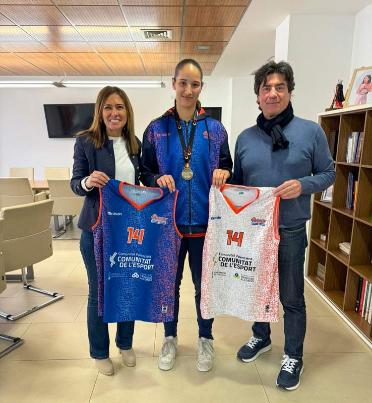 La alcaldesa de Almassora, María Tormo, junto con el concejal de Deportes, Paco Soriano, ha felicitado a Mar Conde Barberá por su oro en el Campeonato de España de Selecciones Autonómicas de Baloncesto.