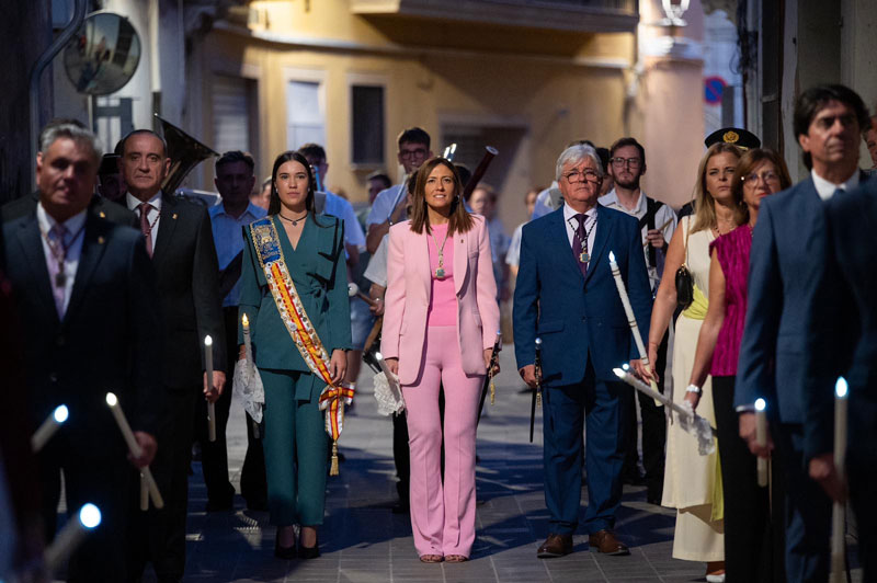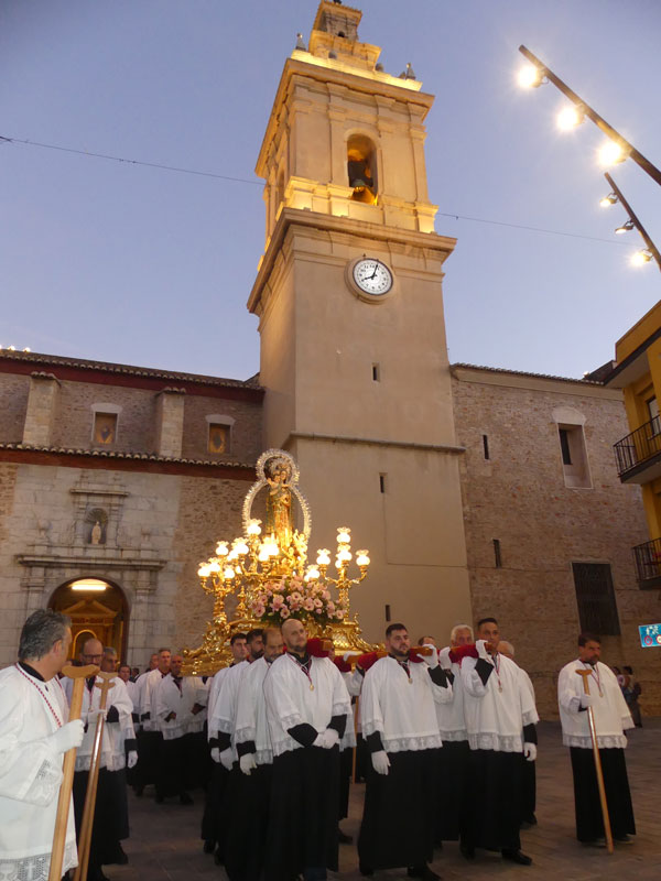 Comienza la cuenta atrás para las fiestas en honor a la Mare de Déu del Roser con el traslado de la imagen de la patrona hasta la iglesia del Cristo. Cabe destacar que es la primera vez que se organiza este acto con tanta solemnidad. Una comitiva formada por las integrantes de la Cofradía Corte de Honor de la Virgen del Rosario y Santa Quiteria; los párrocos de la Natividad; autoridades locales, encabezadas la alcaldesa, María Tormo; y la Reina, Aitana Adsuara, junto a las Damas de su Corte de Honor, Verónica Franco, Laura Garrido, Alexandra Pesudo y María Vidal, acompañaron al Roser hasta la iglesia del Cristo, donde por primera vez se celebrará la novena en honor a la patrona, se rezaba en la Natividad.