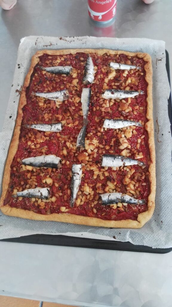 Coca de tomata y sardinas